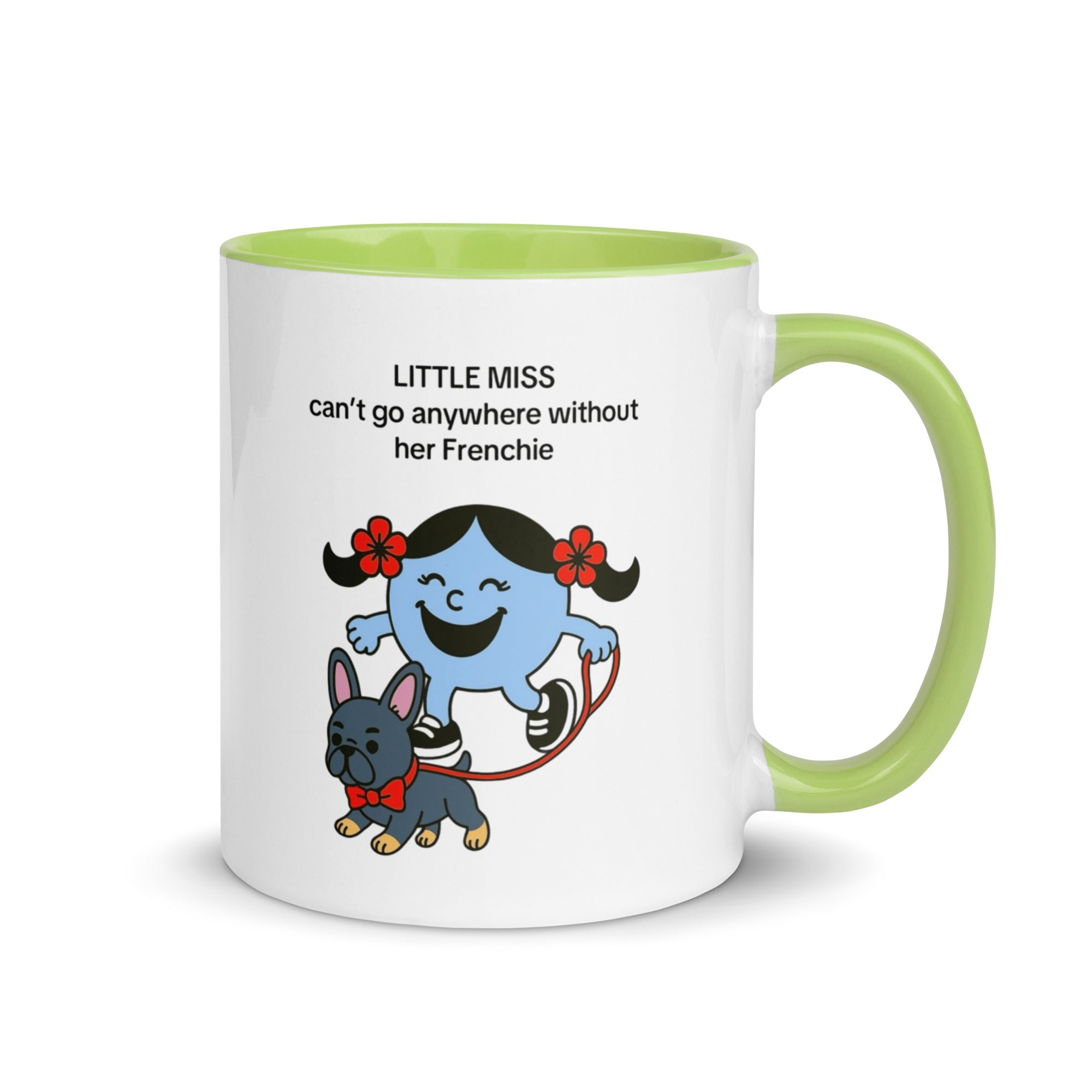 Add a splash of color to your morning coffee or tea ritual! These Little Miss can't go anywhere without her Frenchie coffee cup not only have a beautiful design on them, but also a colorful rim, handle, and inside, so the mug is bound to spice up your mug rack.