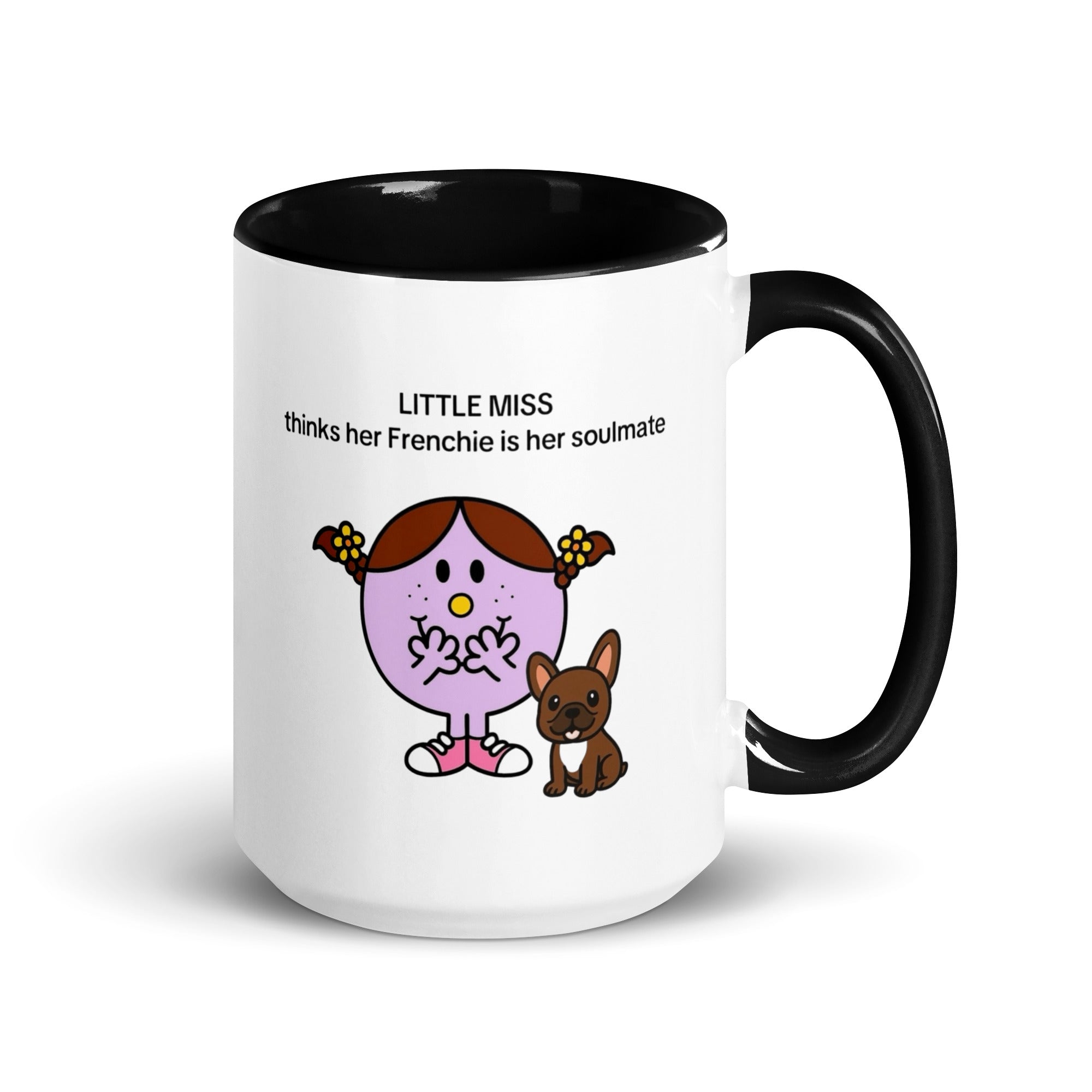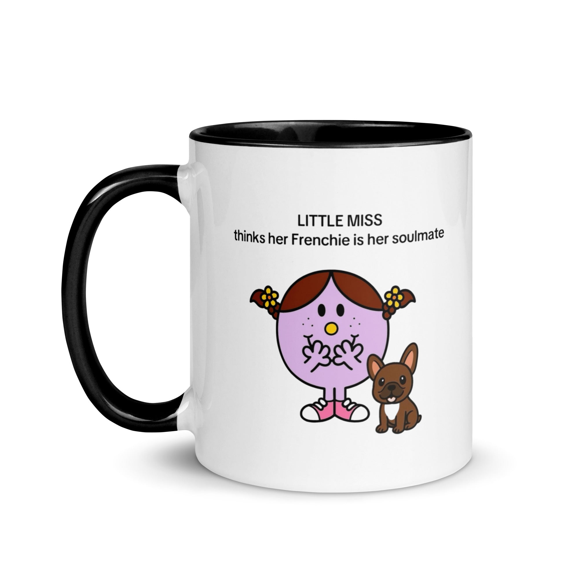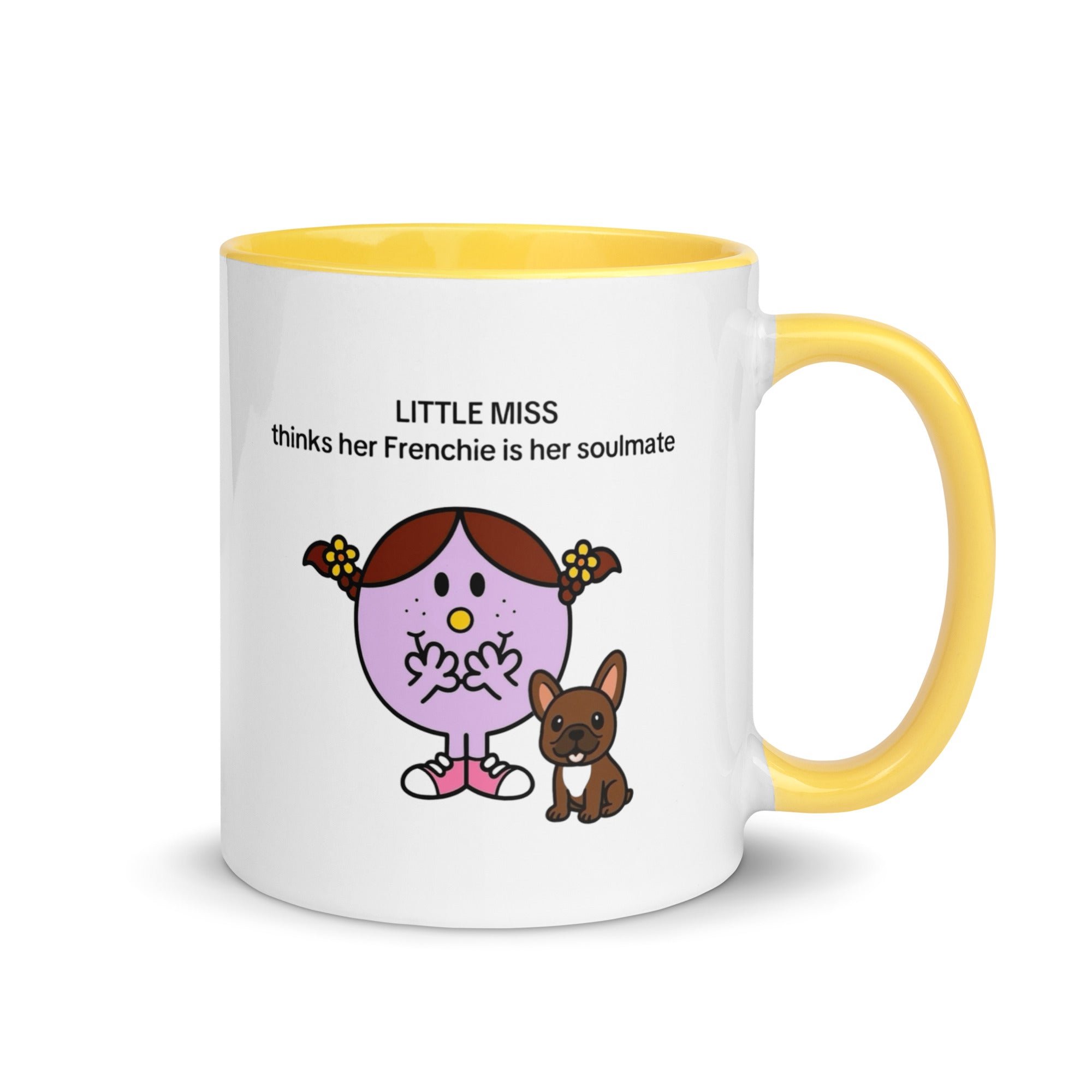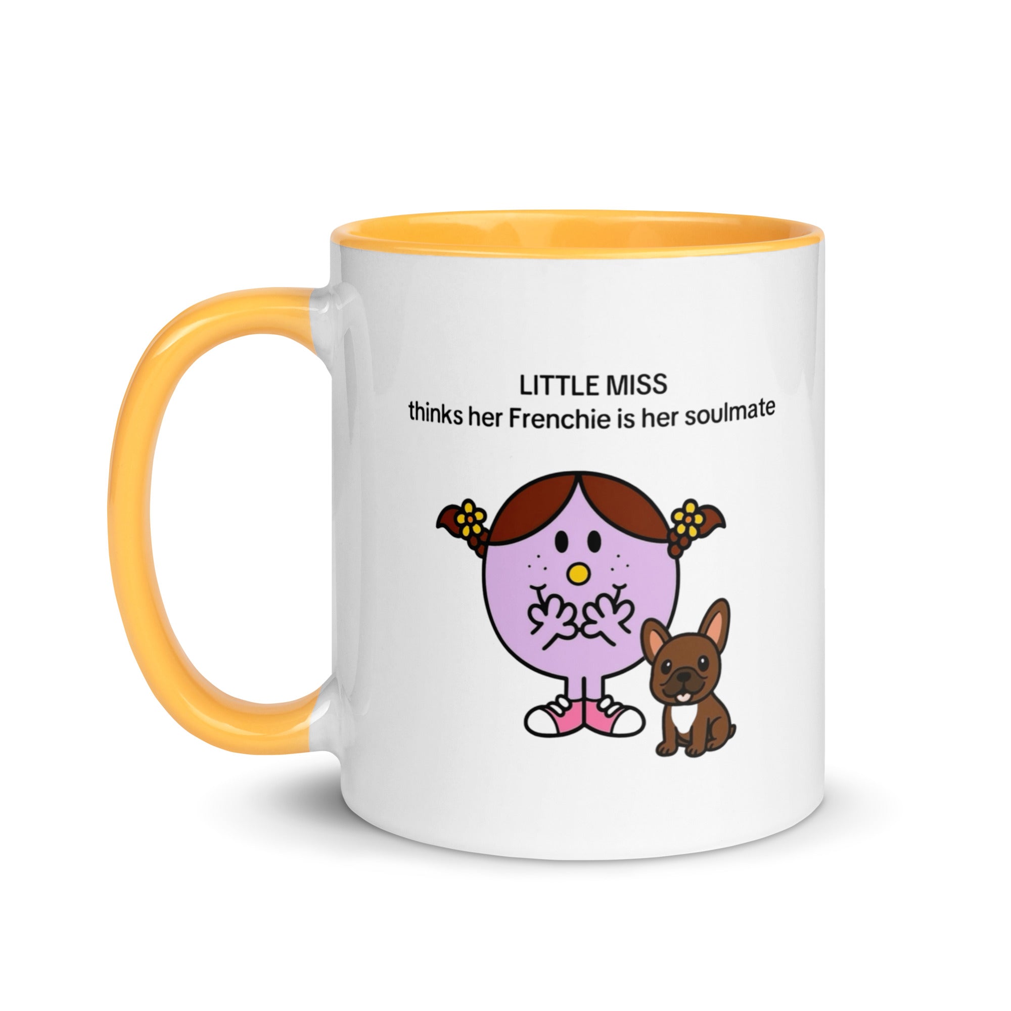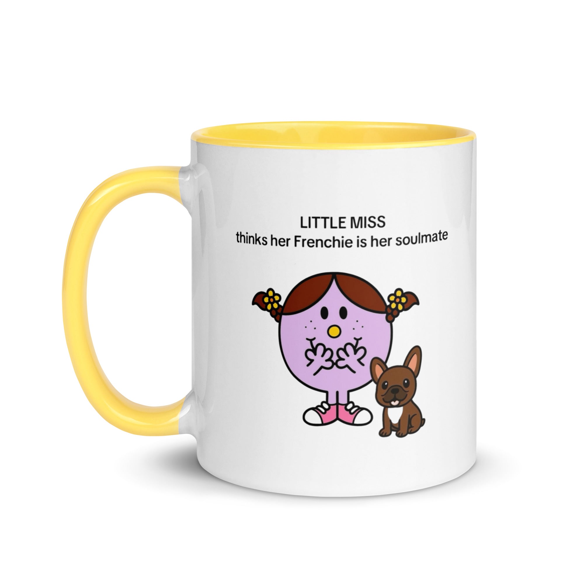 Add a splash of color to your morning coffee or tea ritual! These Little Miss Frenchie thinks her Frenchie is her soulmate coffee cup not only have a beautiful design on them, but also a colorful rim, handle, and inside, so the mug is bound to spice up your mug rack.