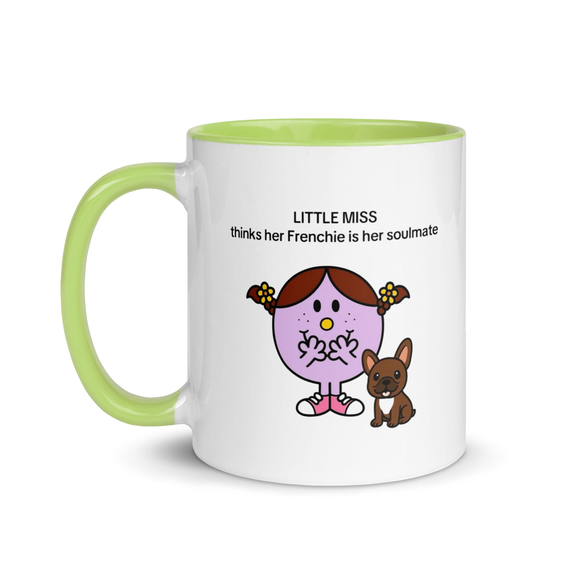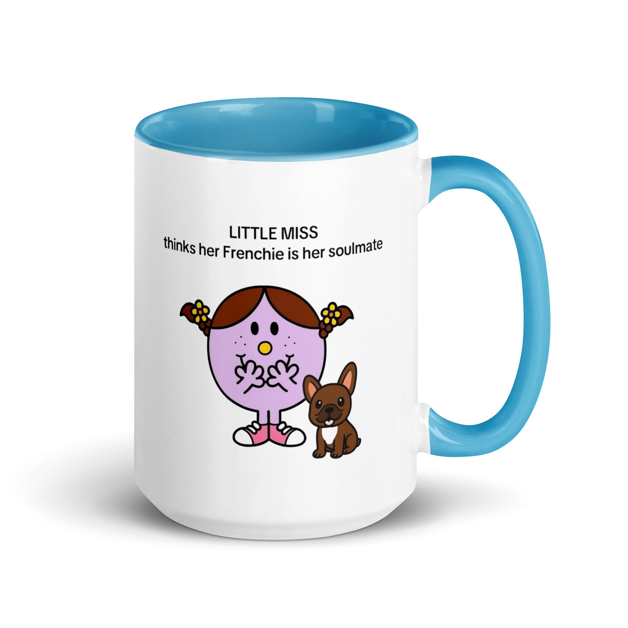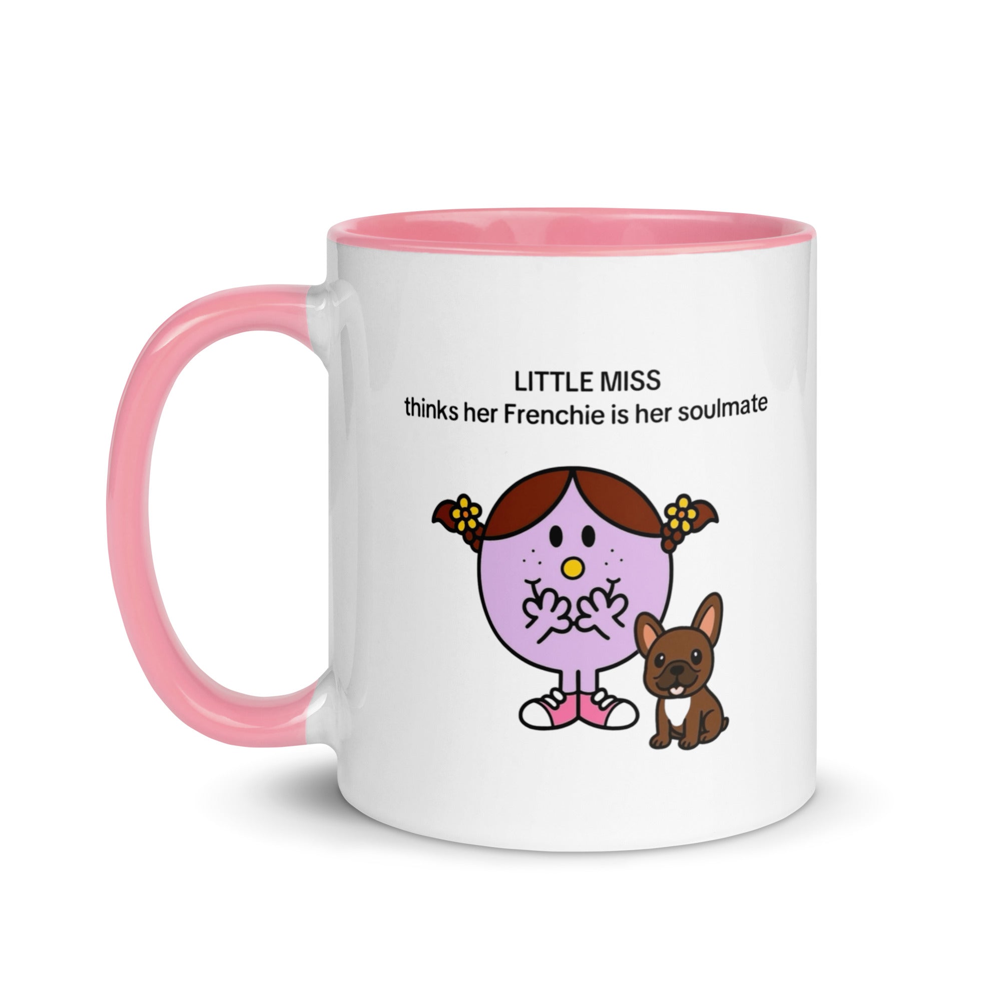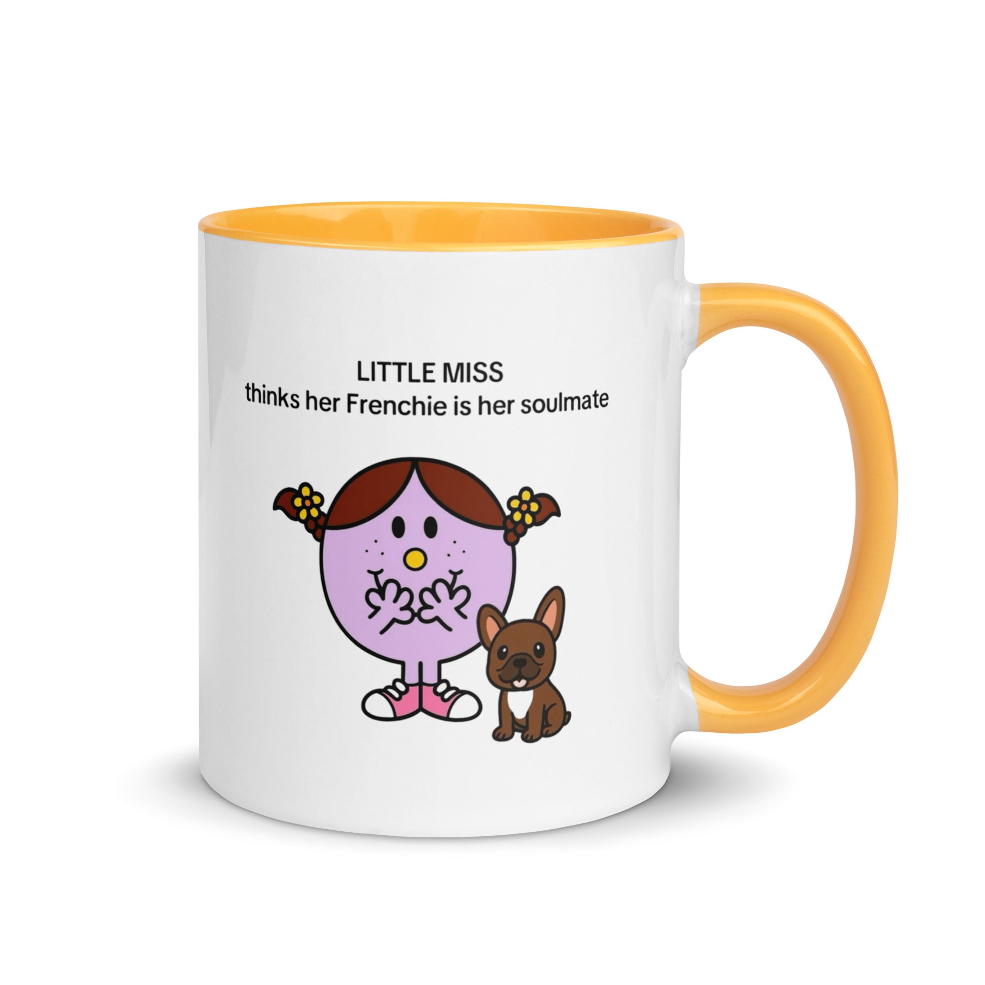 Add a splash of color to your morning coffee or tea ritual! These Little Miss Frenchie thinks her Frenchie is her soulmate coffee cup not only have a beautiful design on them, but also a colorful rim, handle, and inside, so the mug is bound to spice up your mug rack.