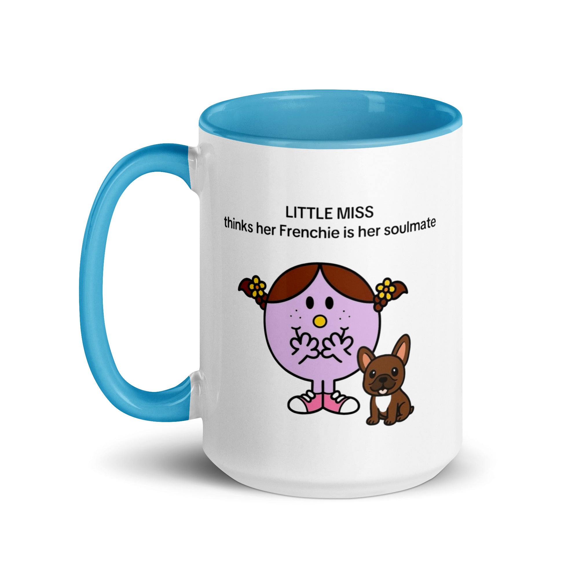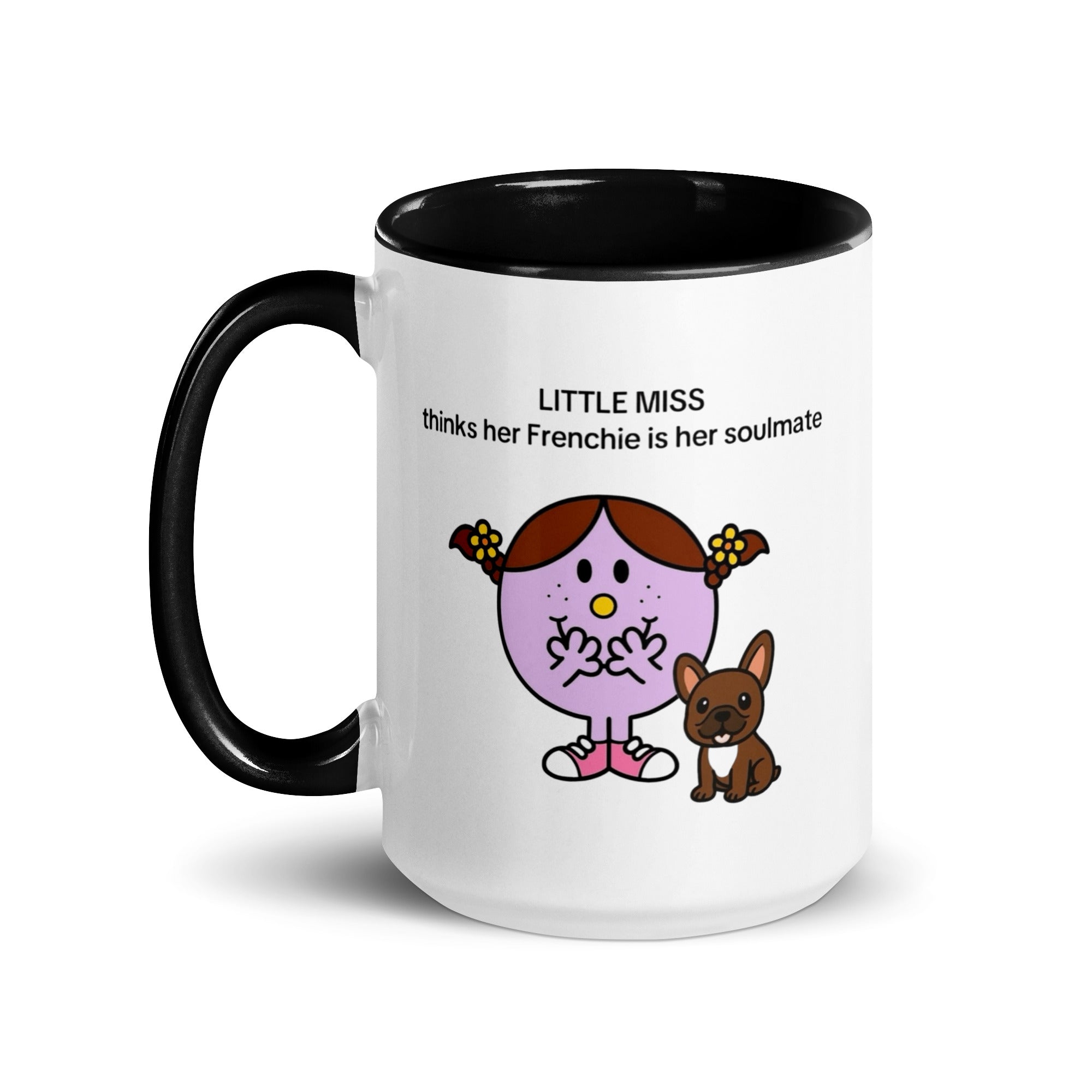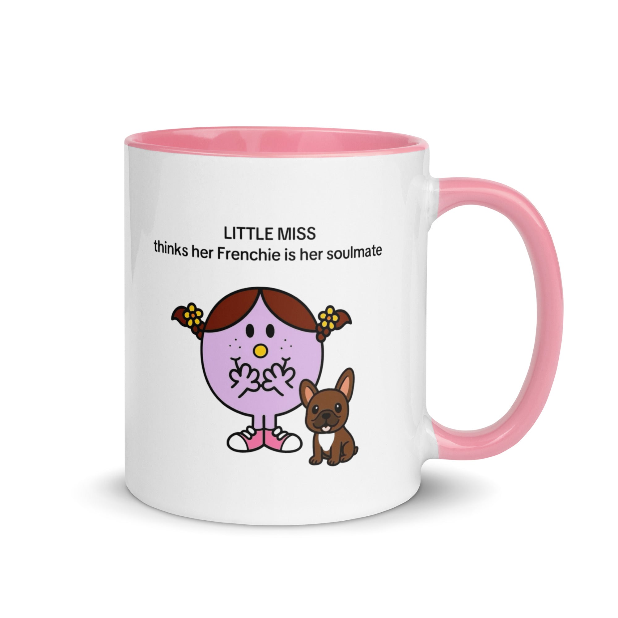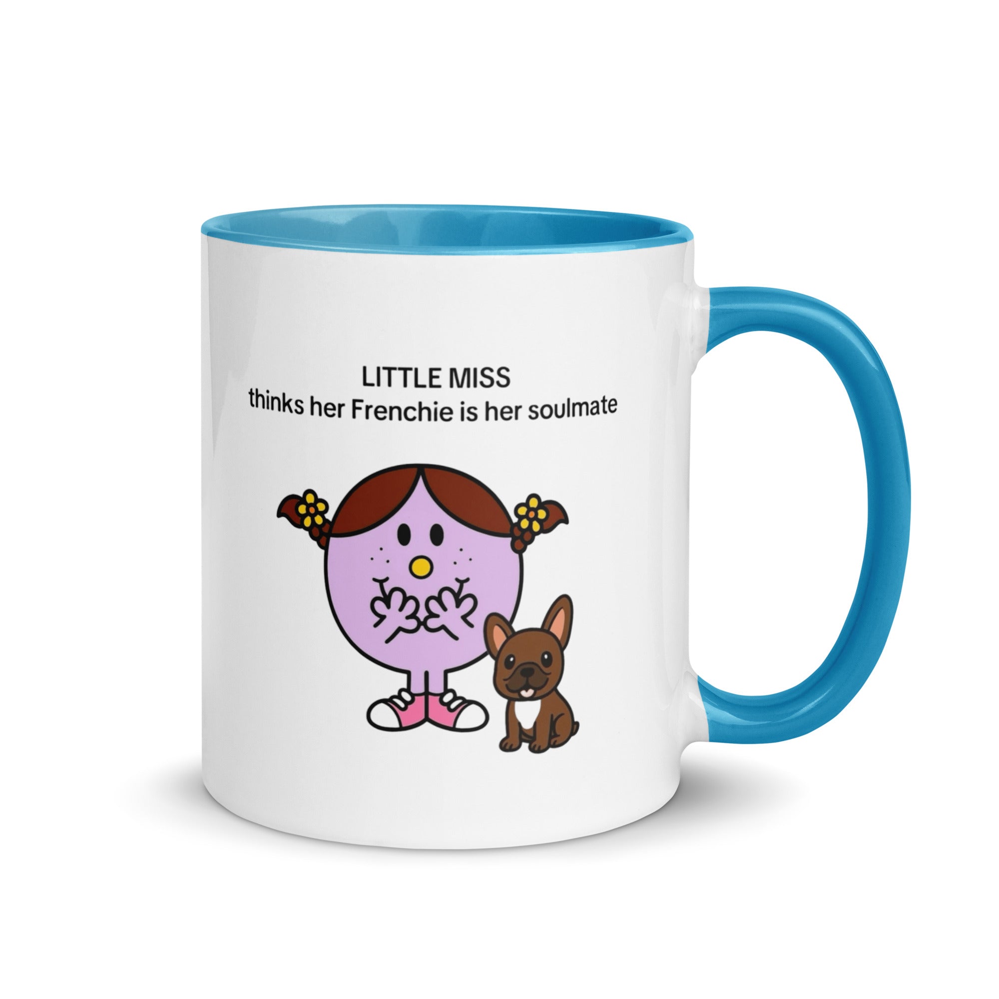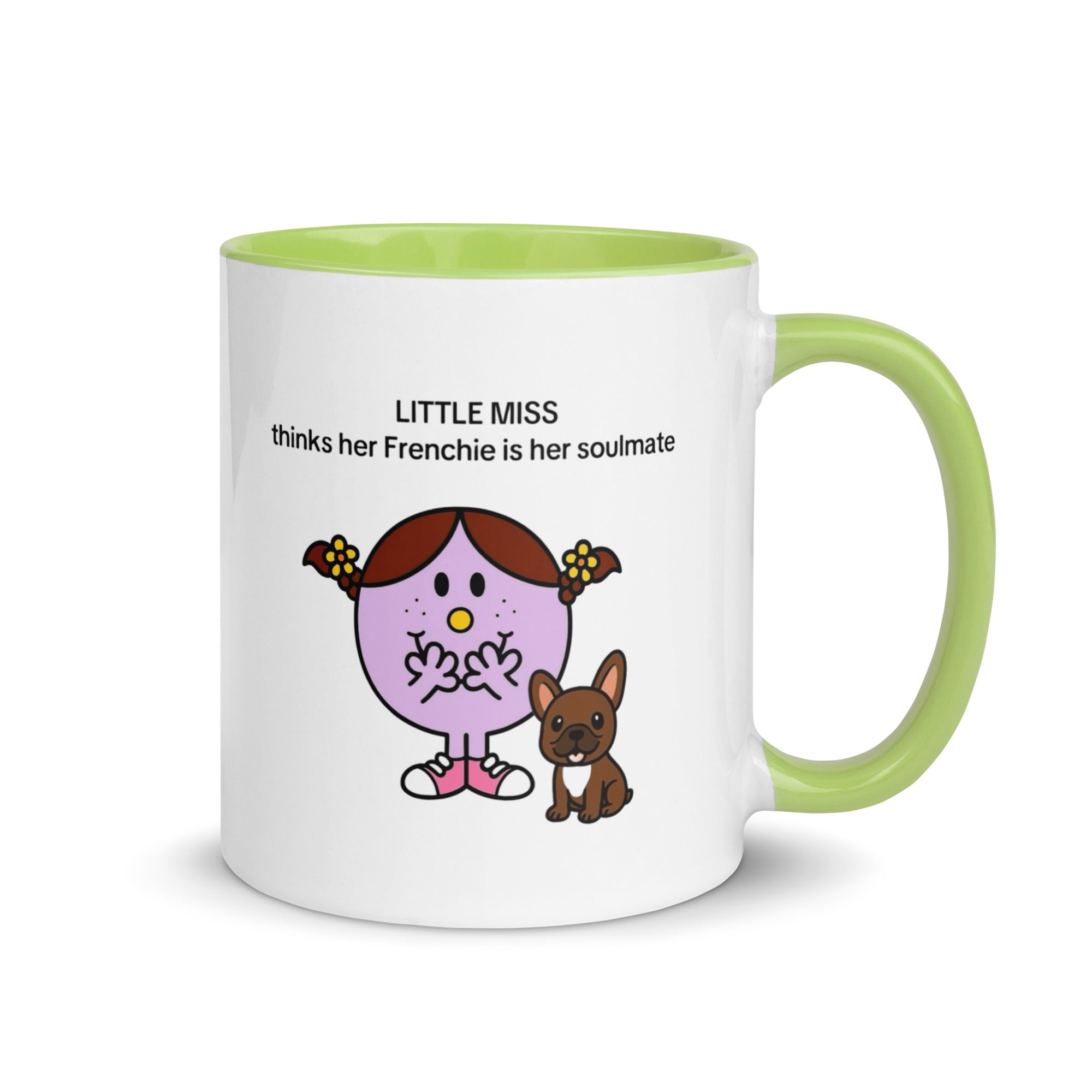 Add a splash of color to your morning coffee or tea ritual! These Little Miss Frenchie thinks her Frenchie is her soulmate coffee cup not only have a beautiful design on them, but also a colorful rim, handle, and inside, so the mug is bound to spice up your mug rack.
