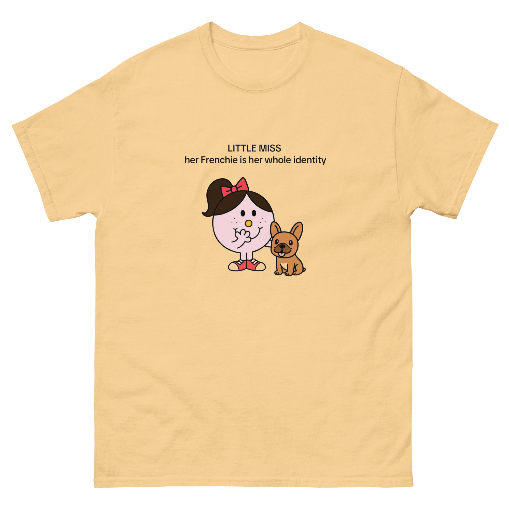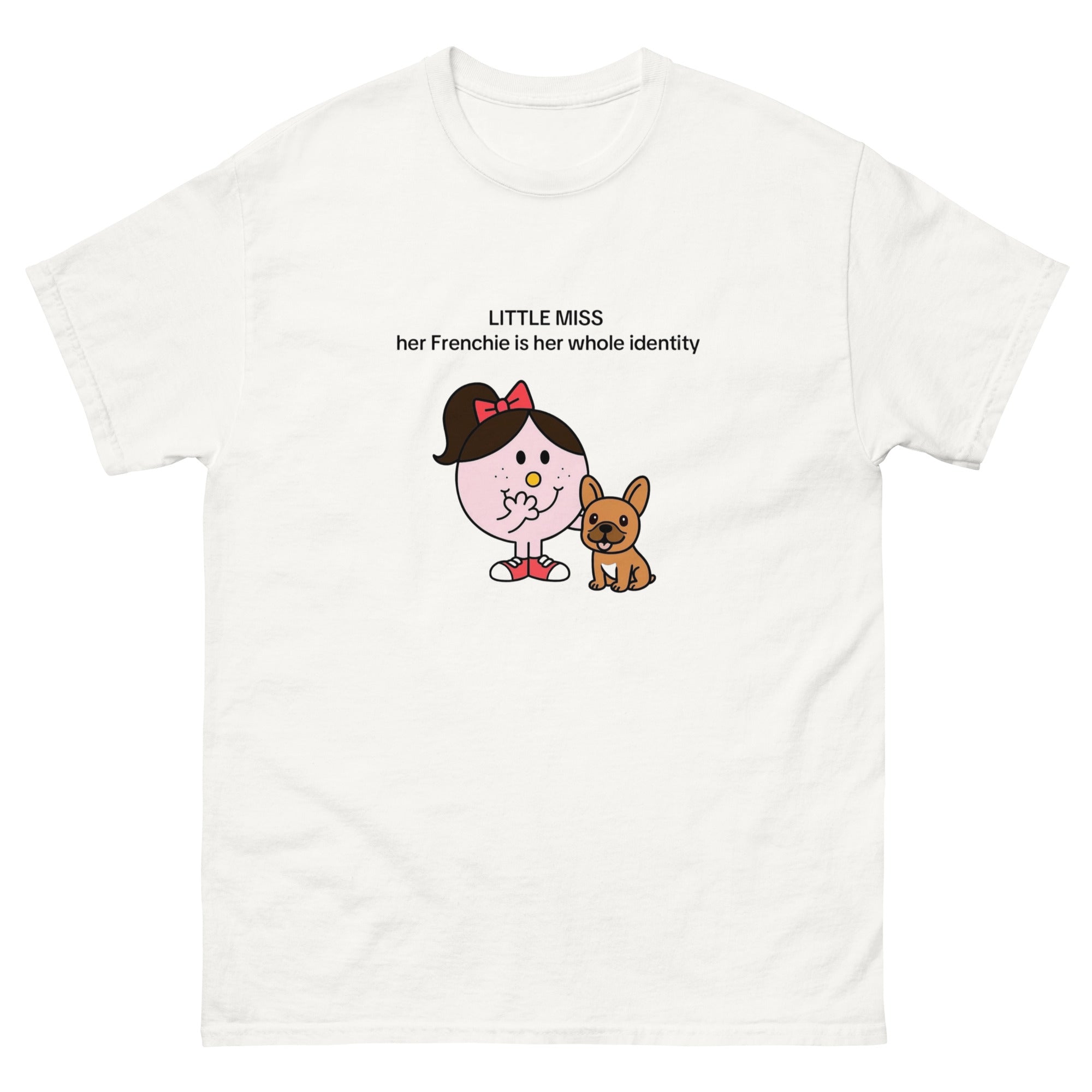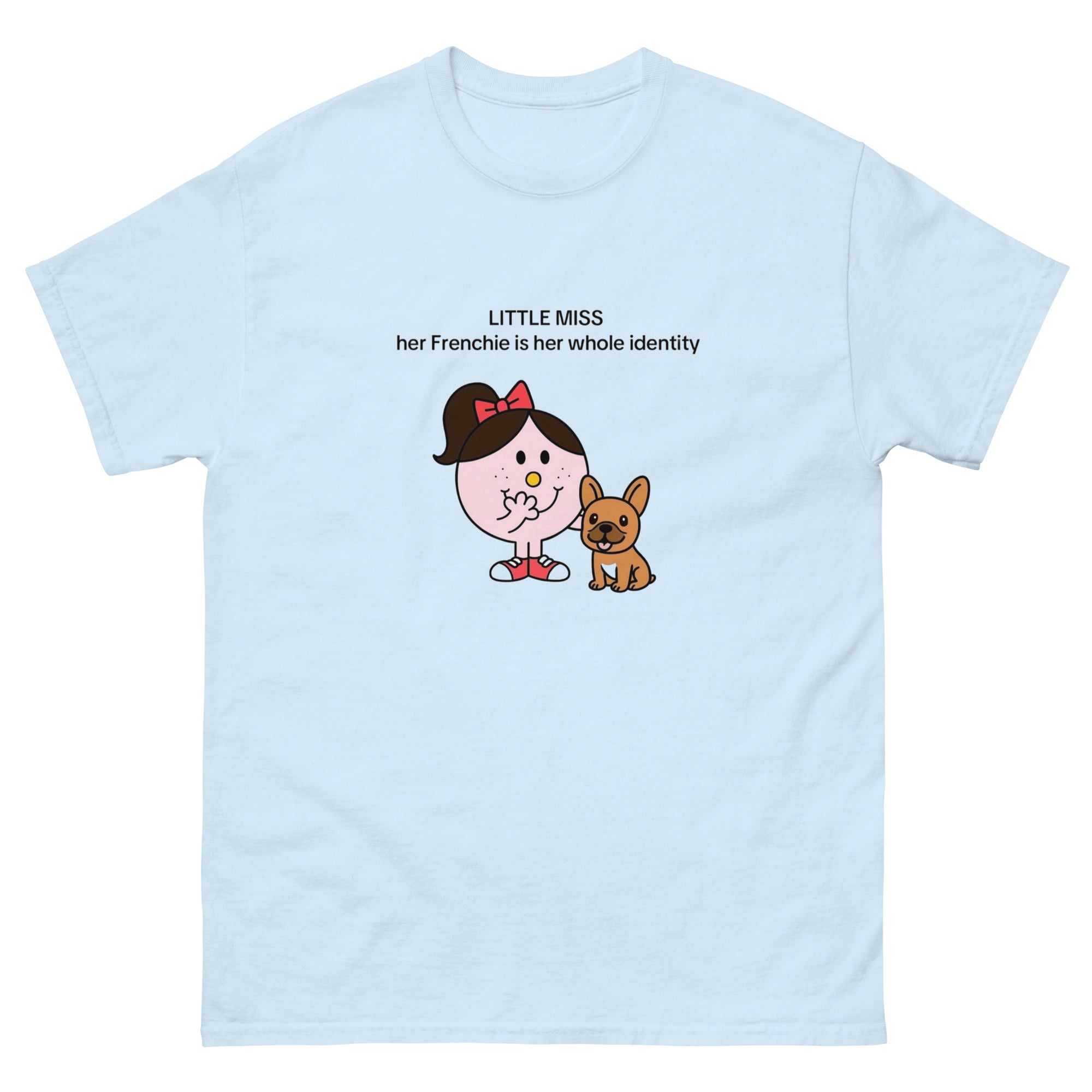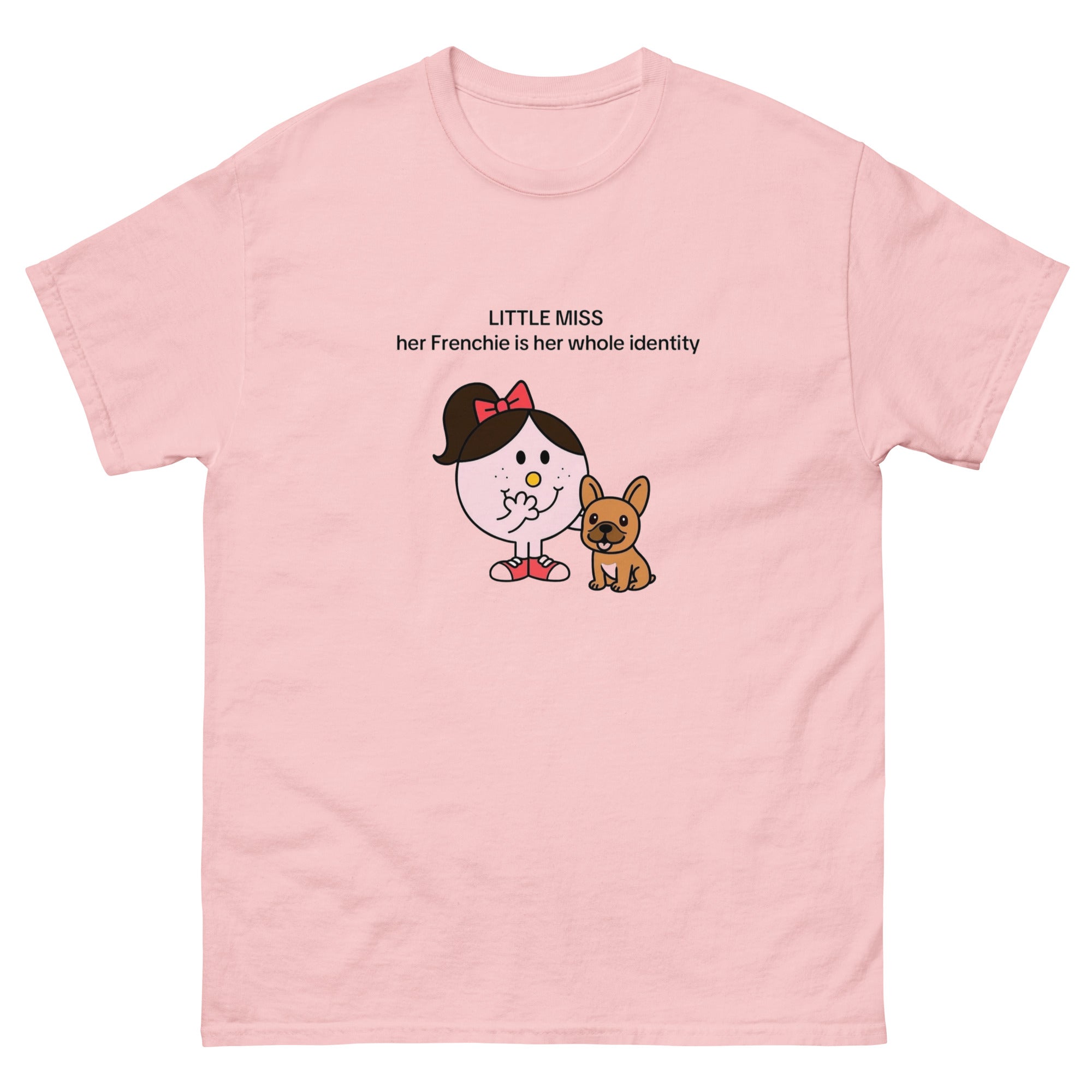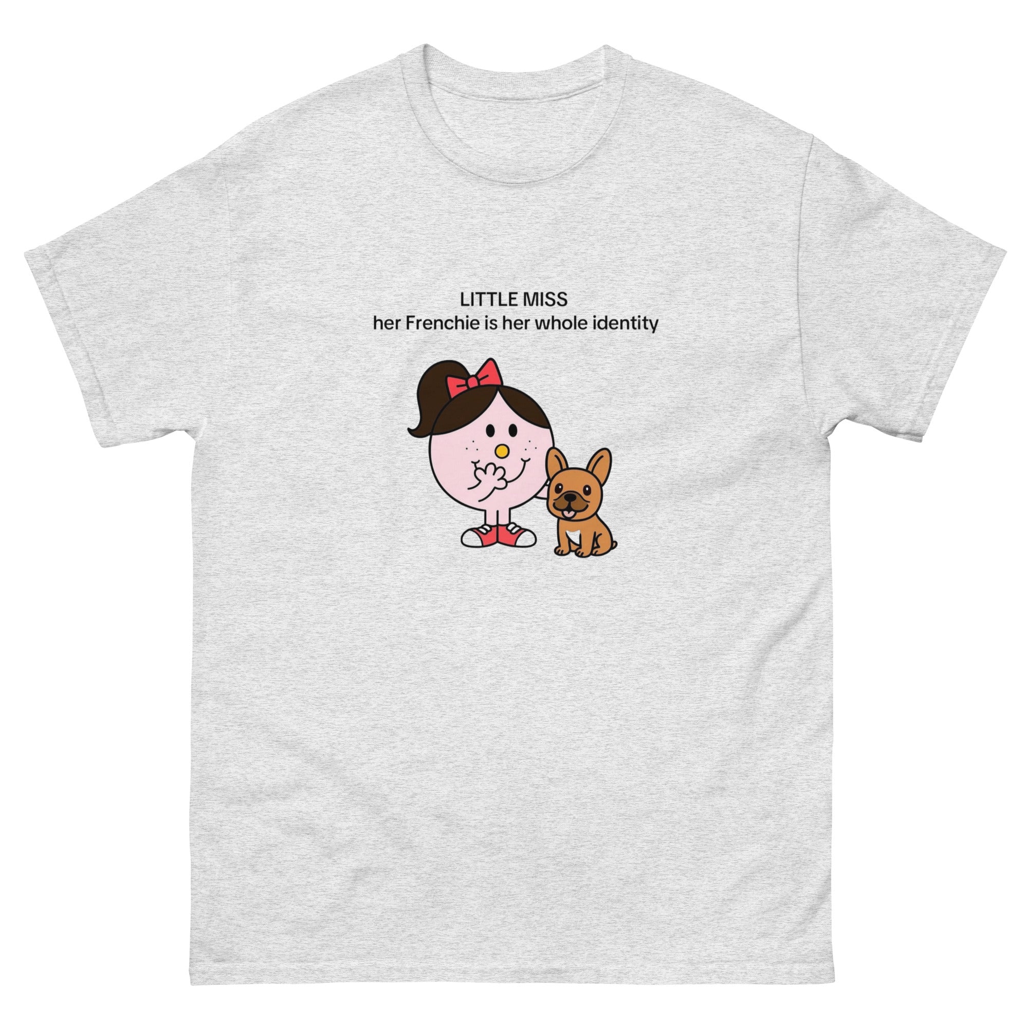 The 100% cotton Little Miss her Frenchie is her whole identity t-shirt will help you land a more structured look. It sits nicely, maintains sharp lines around the edges, and goes perfectly with layered streetwear outfits. Plus, it's extra trendy now!