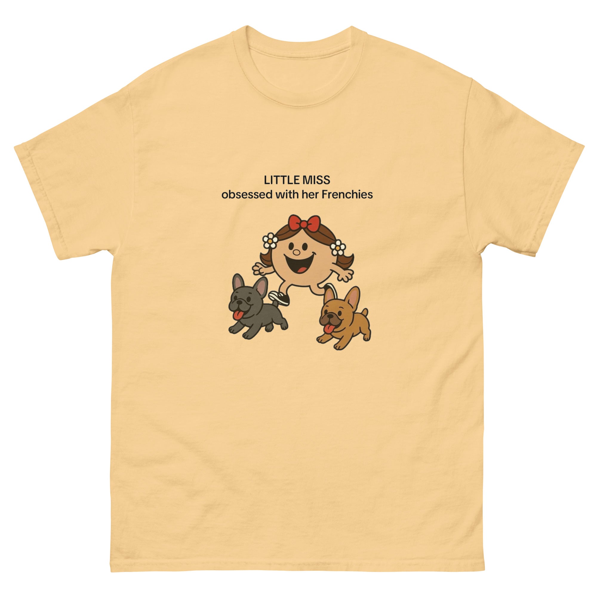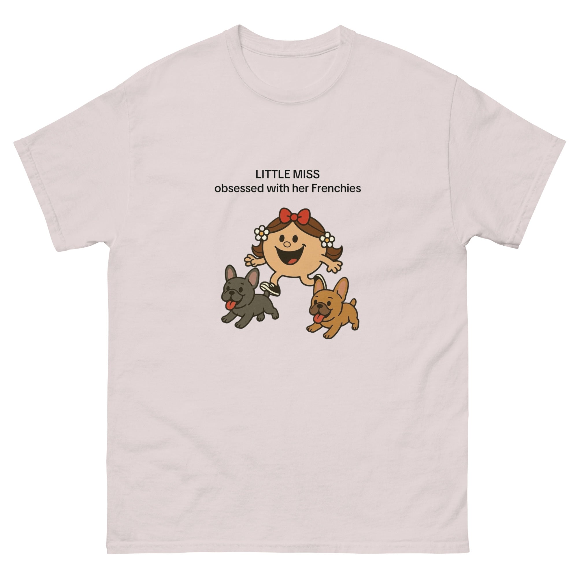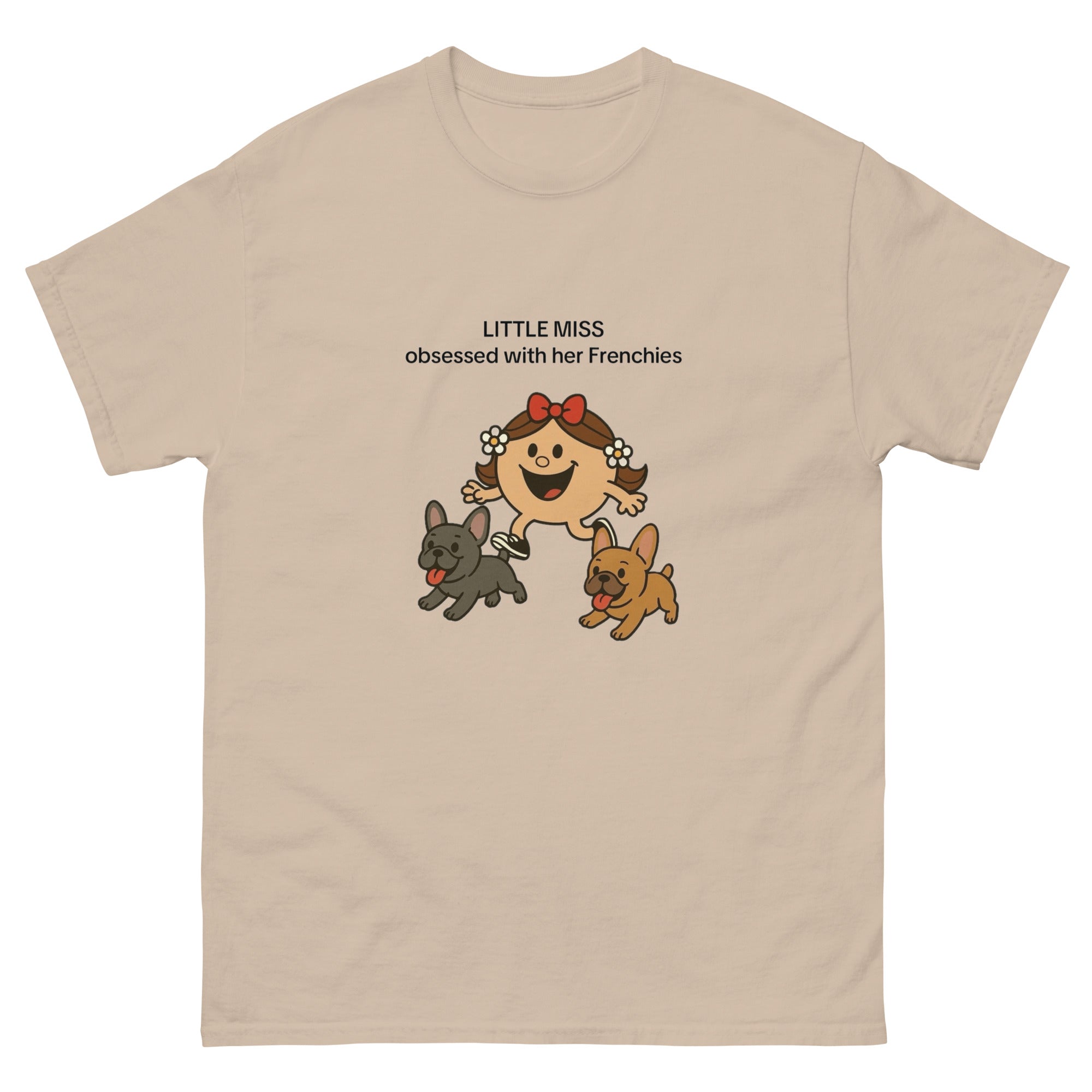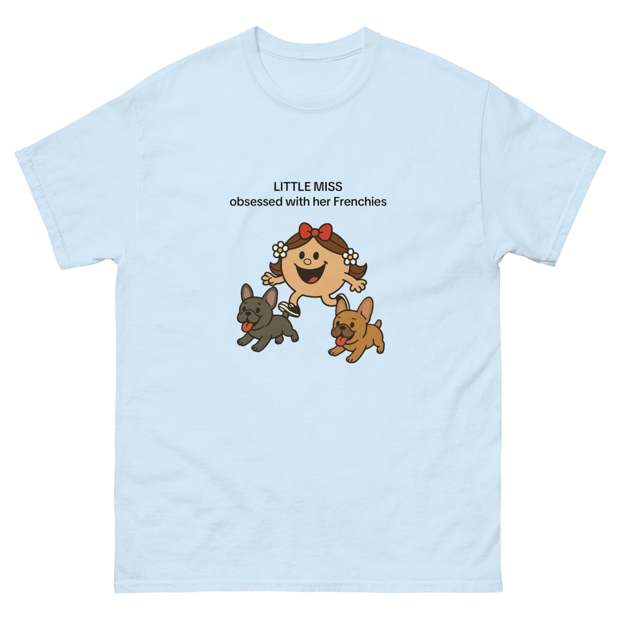 The 100% cotton unisex Little Miss obsessed with her Frenchies tshirt will help you land a more structured look. It sits nicely, maintains sharp lines around the edges, and goes perfectly with layered streetwear outfits. Plus, it's extra trendy now!